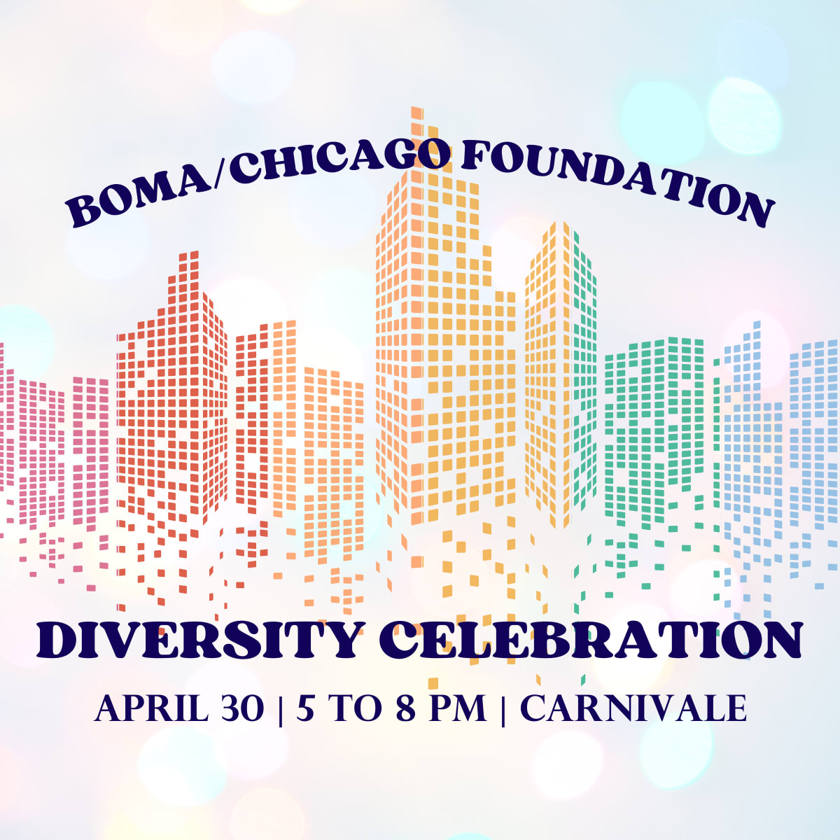 Join the Foundation and the Diversity Committee in promoting and celebrating diversity in commercial real estate at this year's Diversity Celebration. This event will be held on Thursday, April 30, from 5 PM to 8 PM at Carnivale. We expect 500+ people to attend!