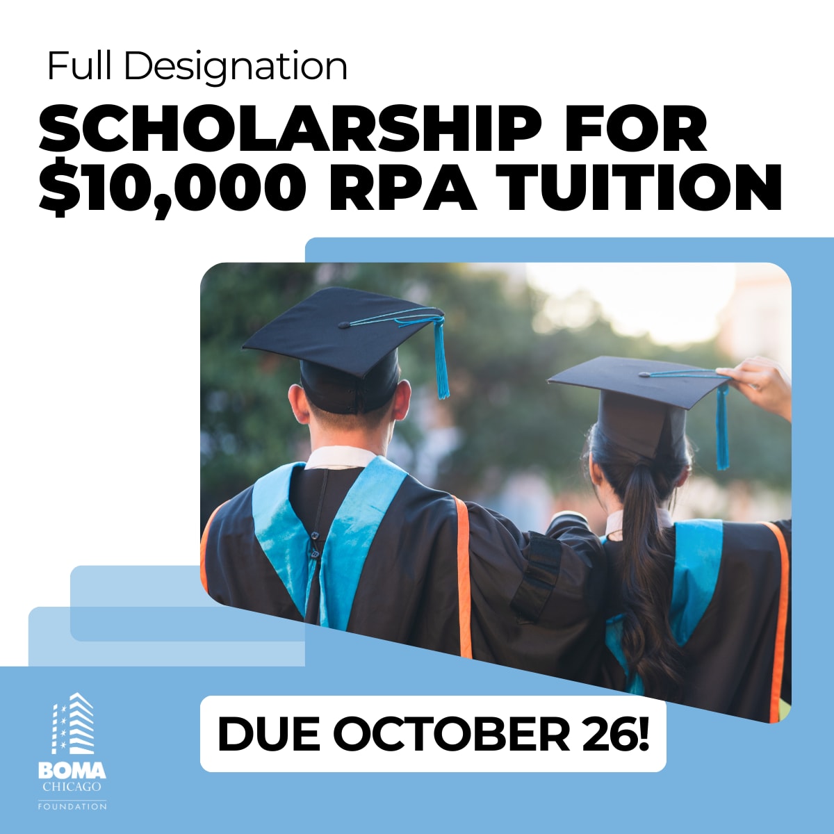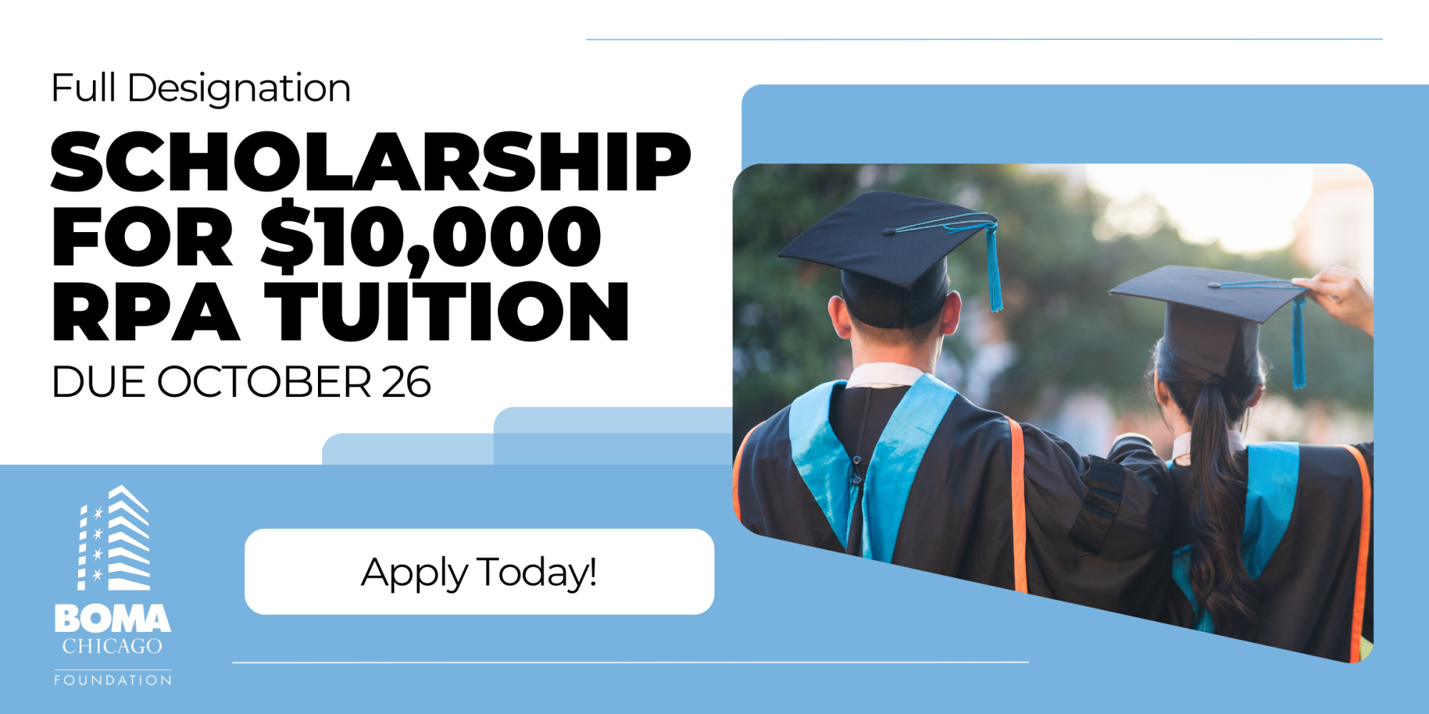 Apply for the BOMA/Chicago Foundation's Full Designation Scholarship – a needs-based opportunity that provides the $10,000 full tuition for all eight classes leading to either the RPA or FMA designation.